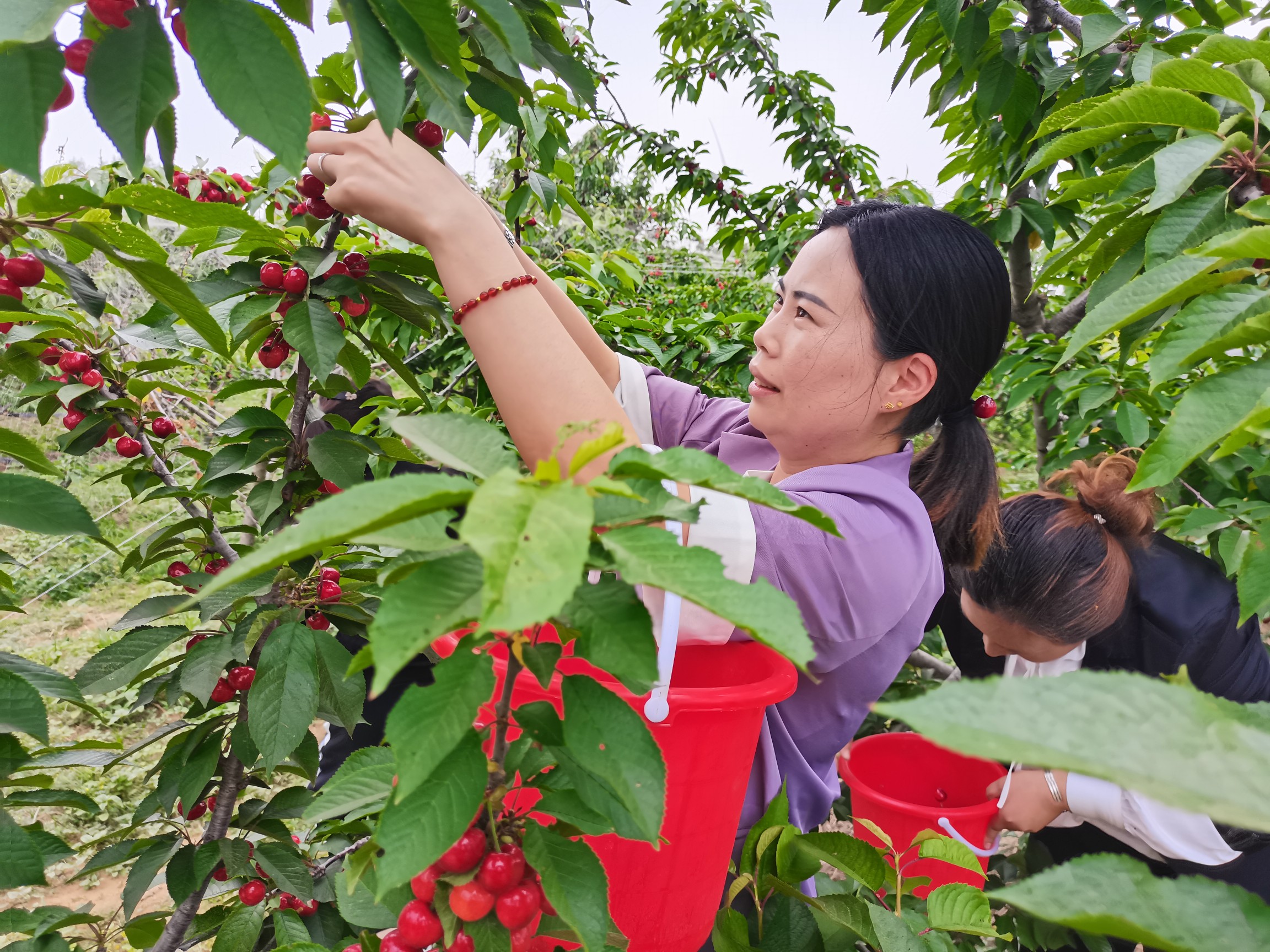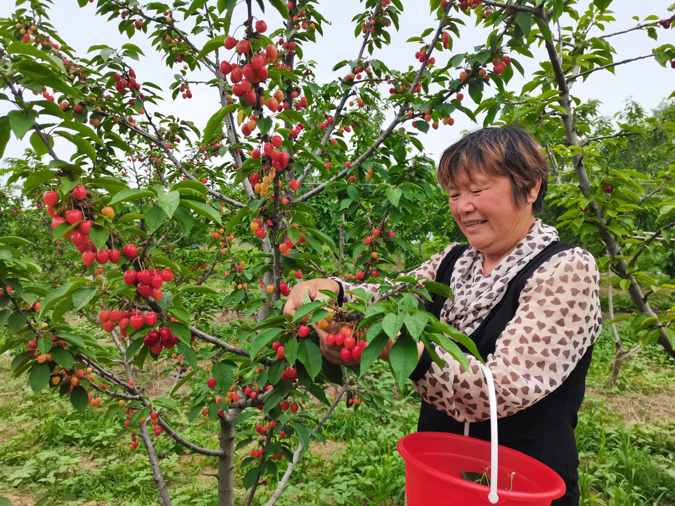 大河网讯(记者 董伦峰 通讯员 马承恩 董晓宁)5月15日,在尉氏县大马乡双岭岗村联众瓜果种植专业合作社里,脱贫群众张梅承包的4亩樱桃园,翠绿的叶片下露出饱满诱人红红的樱桃,她和其他的脱贫群众一起把土地流转给了合作社,然后在合作社里承包了几亩果园,既有土地流转租金收入,又能承包果园挣钱。脱贫后,现在的钱袋鼓的更大了。为进一步优化种植结构、增加农民收入,2020年以来,大马乡不断在发展高端农业、特色农业、资源节约型农业上下功夫,持续推进农业产业规模化、标准化、品牌化。