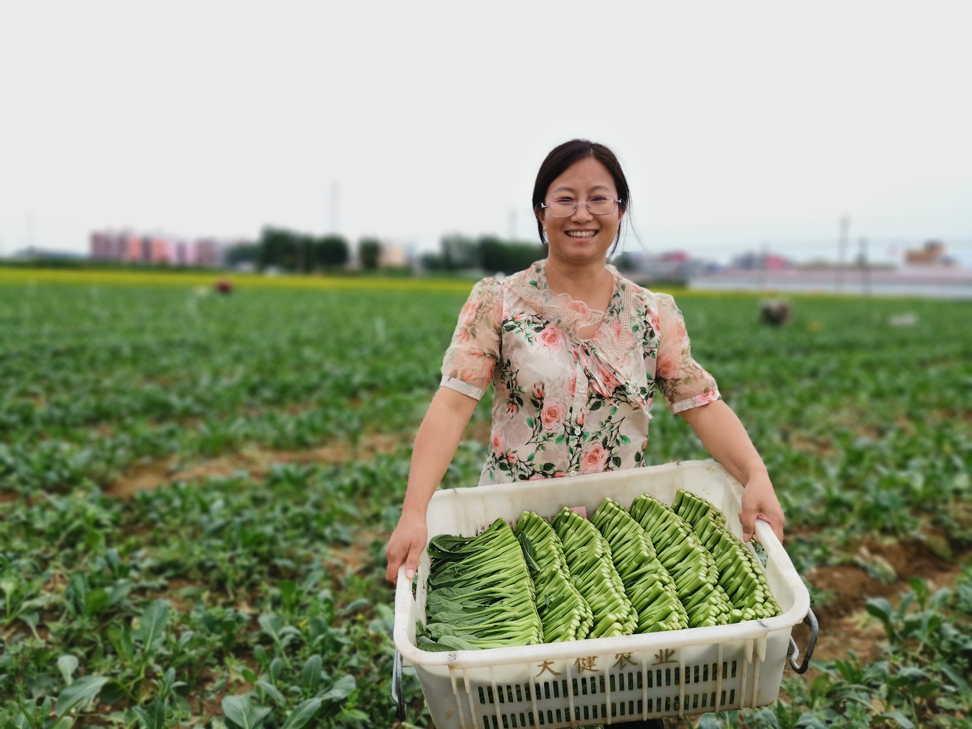 “今天采收的5万多斤菜心,需要打冷6个小时以上装箱,明天5点前发车,全程采取冷链物流运输,24小时内到达广州、深圳。”张延辉的妻子端着刚收割的一筐菜心高兴地说。(陈以显 张馨丹)
