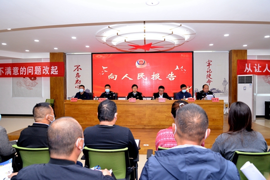 中牟县副县长、县公安局局长栗英围绕扫黑除恶、队伍教育整顿、打击违法犯罪、大案侦破、交通整治、社会治理、“放管服”改革、法治公安建设、防汛救灾、疫情防控等10个方面向参会的各界代表报告了近年来中牟公安取得的战果和成绩,同时表明了存在的不足和今后的努力方向。参会代表畅所欲言,县公安局相关警种负责人对大家提出的问题予以现场答复。