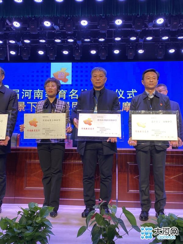 许慎中学校长杨军平(图右二)代表学校领取“河南教育名片”奖牌