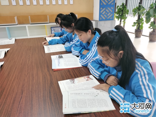 课堂教研。学校全体教师,以提高教学质量为目的,以课堂教学为阵地,在不断的实践中,依据许慎编撰《说文解字》的方法:方以类聚,物以群分;同条牵属,共理相贯。摸索出一套独特的教学模式——许慎四法,即“聚、分、诉、贯”。 “聚”即课前聚,学生共同研究一课,商量问题、聚集问题;“分”即将聚集的问题课下分组进行讨论;“诉”即课堂诉,讲诉自己的见解或分析;“贯”即贯通,学生质疑探究后,老师做梳理总结。保障了学生自主学习的主体地位,真正把课堂还给学生。