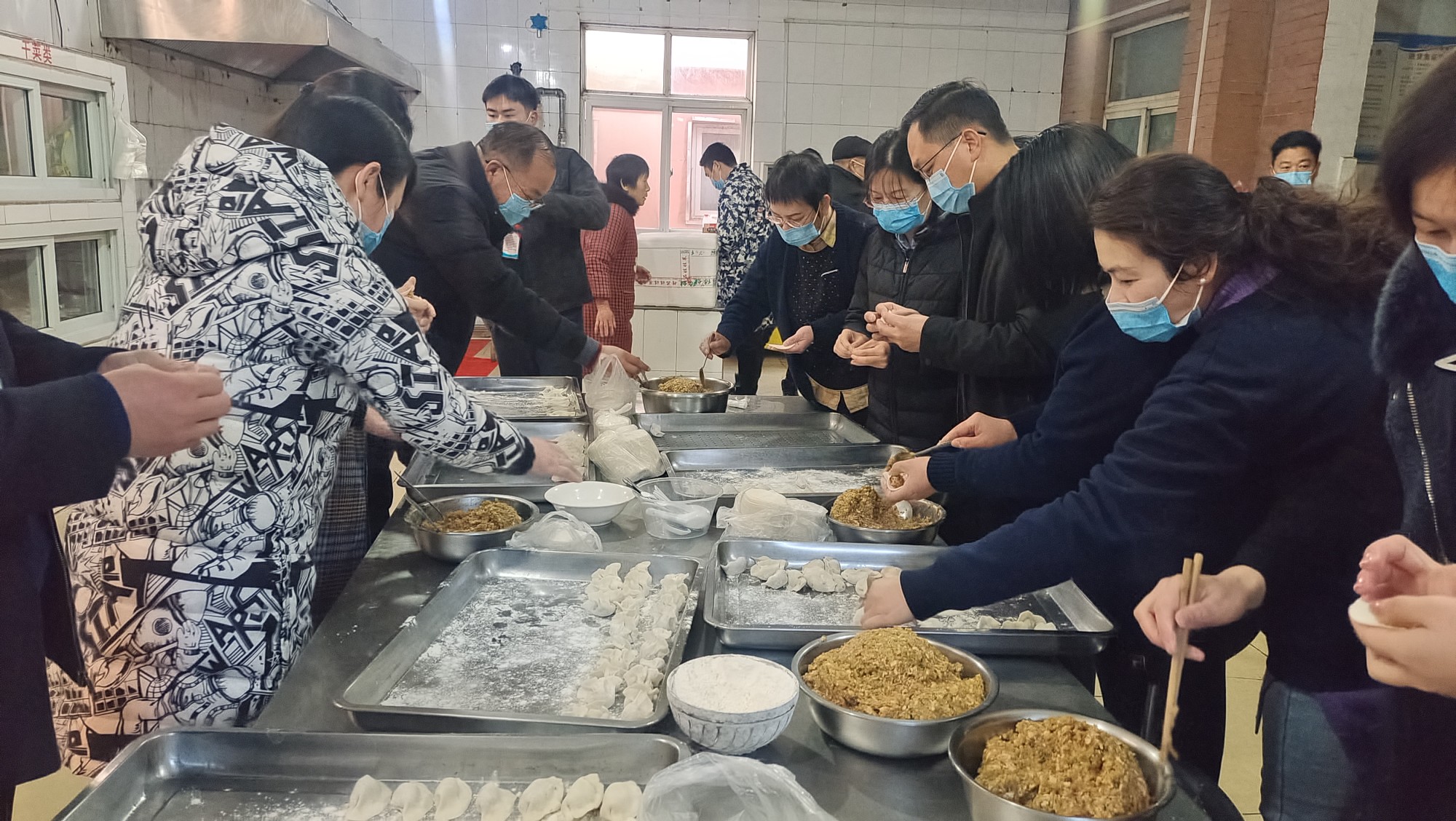 郏县妇幼保健院工作人员齐动手包饺子(李秋环/摄影)