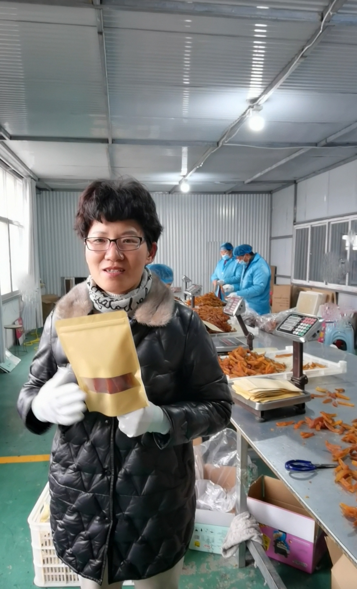 据了解,香来美食品厂还是商务部国家级电子商务进农村瓦岗镇运营中心,公司总经理白军敏更是当地一位小有名气的网红主播,人称“红薯姐”。她说:“我是一位地道的农民,没颜值没才气,刚开始做视频直播时没有信心,但是确山县商务局给我很多帮助,给我买了直播设备,布置了直播间,还带我到省里和外地学习,这给我增添了很大的信心,我就从介绍咱的倒蒸红薯干开始,一点点拍视频做直播,慢慢打开了市场。”