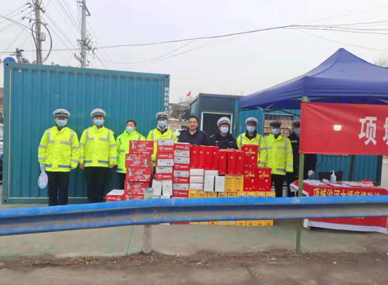 大河网讯 1月7日,项城市清华育英学校董事长谢新华购置慰问品,到该市沙河东大桥看望在寒冬里坚守抗疫一线的交警,感谢他们对项城人民的全力守护,并希望自己能在这场艰苦的奋战中贡献微薄的力量。