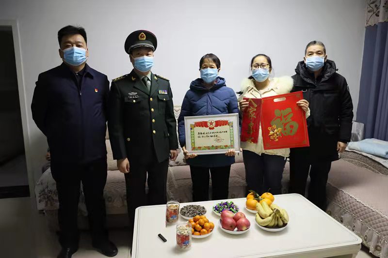 大河网讯 为进一步提升军人军属的荣誉感、自豪感,激发广大官兵安心服役、建功军营的工作激情,1月27日,辉县市退役军人事务局、人武部联合开展为立功受奖现役军人家庭送喜报活动。辉县市人武部上校政委汪军民,辉县市副市长、市公安局局长张忠文等为荣立“二等功”现役军人牛伟林家属上门送喜报,并向家属祝贺并致以新春的问候。