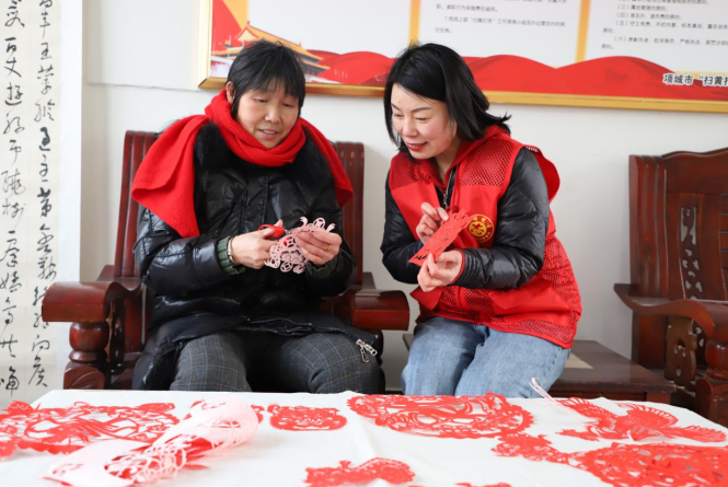 非遗传承人、聂氏剪纸第五代传人李玉兰等也在现场为大家义务剪窗花,剪出了“新风正道”“诗书传家”等名言警句,还剪出了老虎、龙等更是栩栩如生,剪出了寓意美好的大红“福”字,剪出了广大群众对美好生活的憧憬。