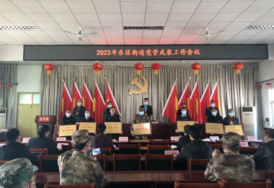 会议宣读表彰决定,与会领导为先进单位和个人颁奖,各社区党支部书记作党管武装工作述职,会议学习《习近平总书记在中央政治局第三十二次集体学习时的讲话精神》,传达河南省、三门峡市和义马市党管武装工作会议精神。东区街道办党工委委员、武装部长陈涛对2021年武装工作进行总结,并对2022年武装工作任务进行安排部署。