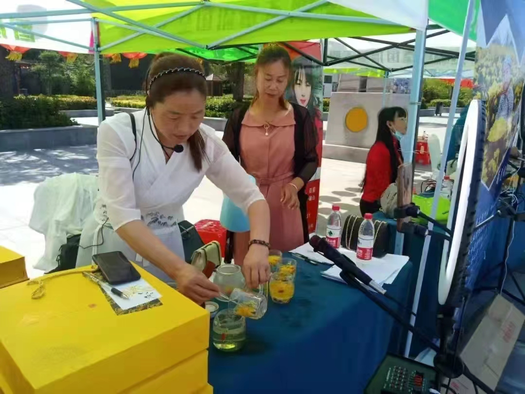 张巧云是确山县启明农业有限公司电商负责人,为发展家乡的菊花种植,带领村民致富,当她了解到县里有免费的电商培训和电商技术支持时,便来到确山县电子商务产业园积极参加电商技能实操培训,并在培训后开设了淘宝店铺。她积极参加县里组织的每一次宣传机会,带着金丝皇菊东奔西走宣传销售,成了小有名气的电商主播。