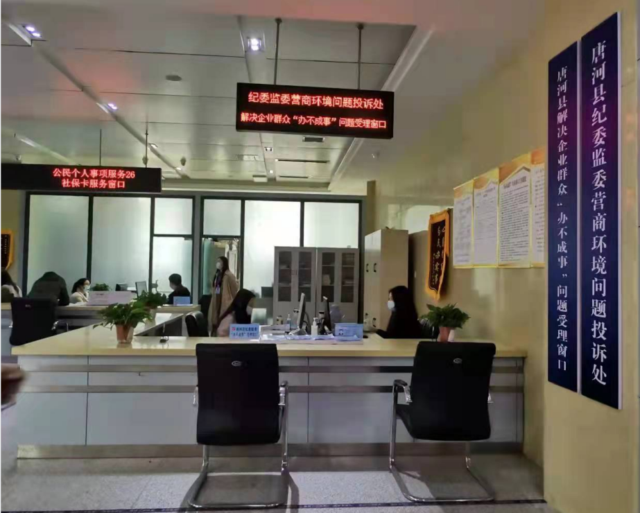 大河网讯 为贯彻落实全县“观念能力作风建设年”活动和优化营商环境工作有关要求,2022年1月,唐河县解决企业群众“办不成事”问题受理窗口和唐河县纪委监委营商环境问题投诉处在县政务和大数据服务中心成立揭牌。纪委监委在窗口安排了专人值班、设立了公告牌、公布了举报电话,对各个进驻部门业务办理情况,及时进行跟踪监督,督促办理部门高效运转,对推诿扯皮、不作为、慢作为、效率低下等损害营商环境的行为,坚决予以查处,切实维护群众合法权益。