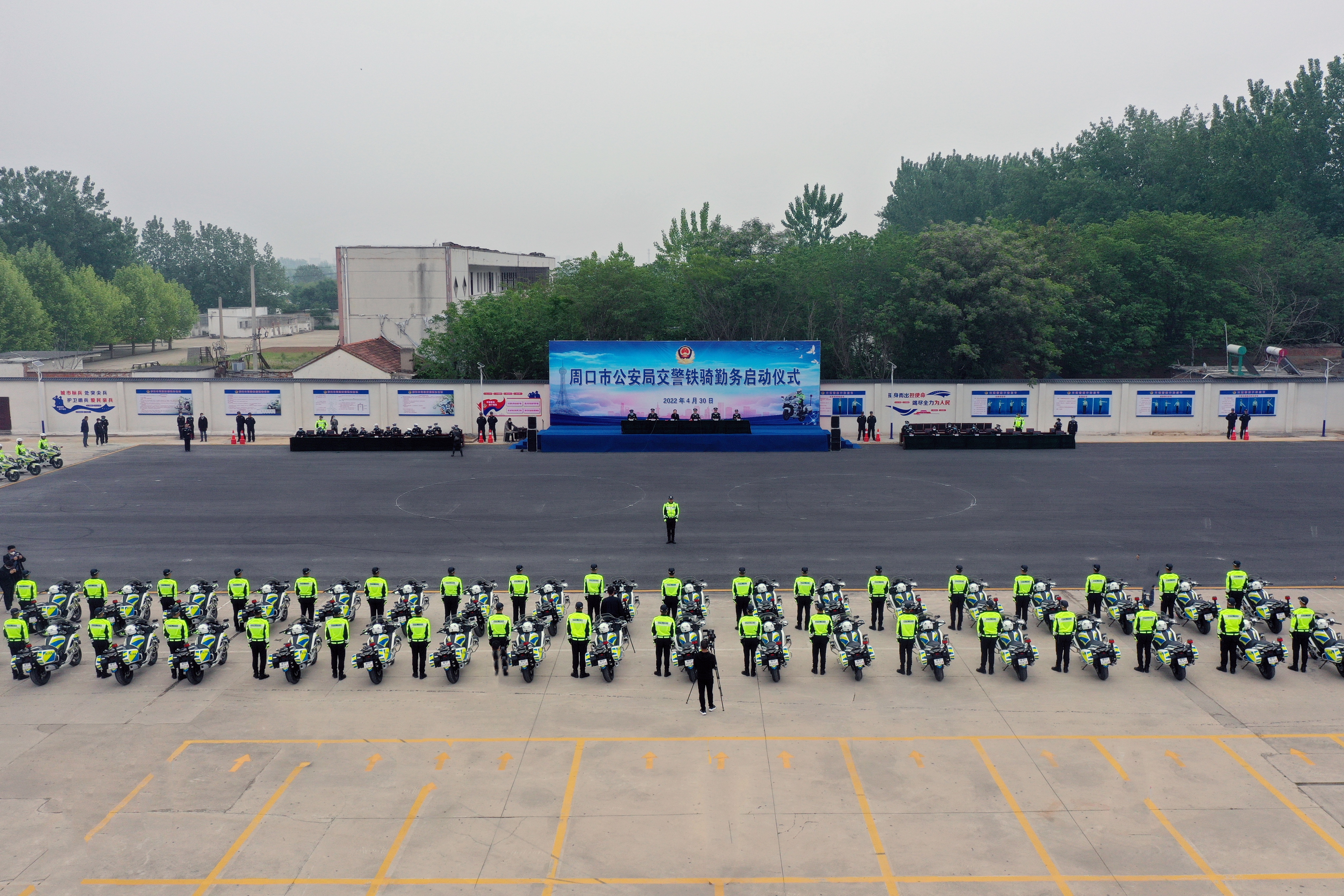 周口市委副书记、政法委书记岳文华,副市长、市公安局局长张元明出席启动仪式并观摩铁骑队员的精彩汇报表演。岳文华下达“铁骑”勤务启动令,张元明对全体铁骑队员提出殷切希望和要求。