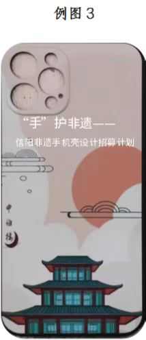 以信阳市非物质文化遗产项目为素材,创作设计手机壳图案(含文案),鼓励以“信阳非遗”为主题进行创作,包括但不限于:表达信阳文化符号的文物、古迹、民俗、方言、地名、名人、风景、红色历史、传统手工艺等题材。