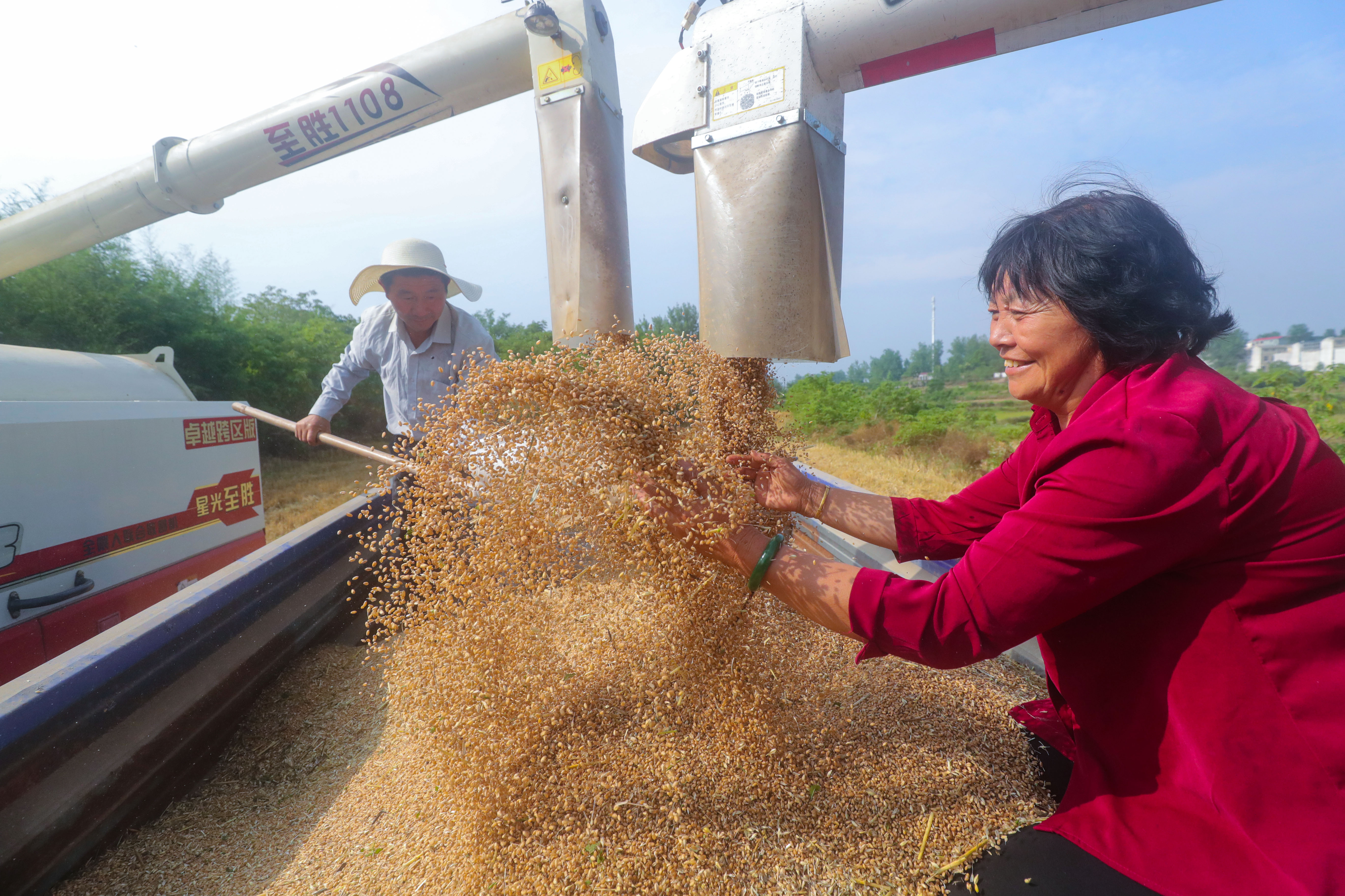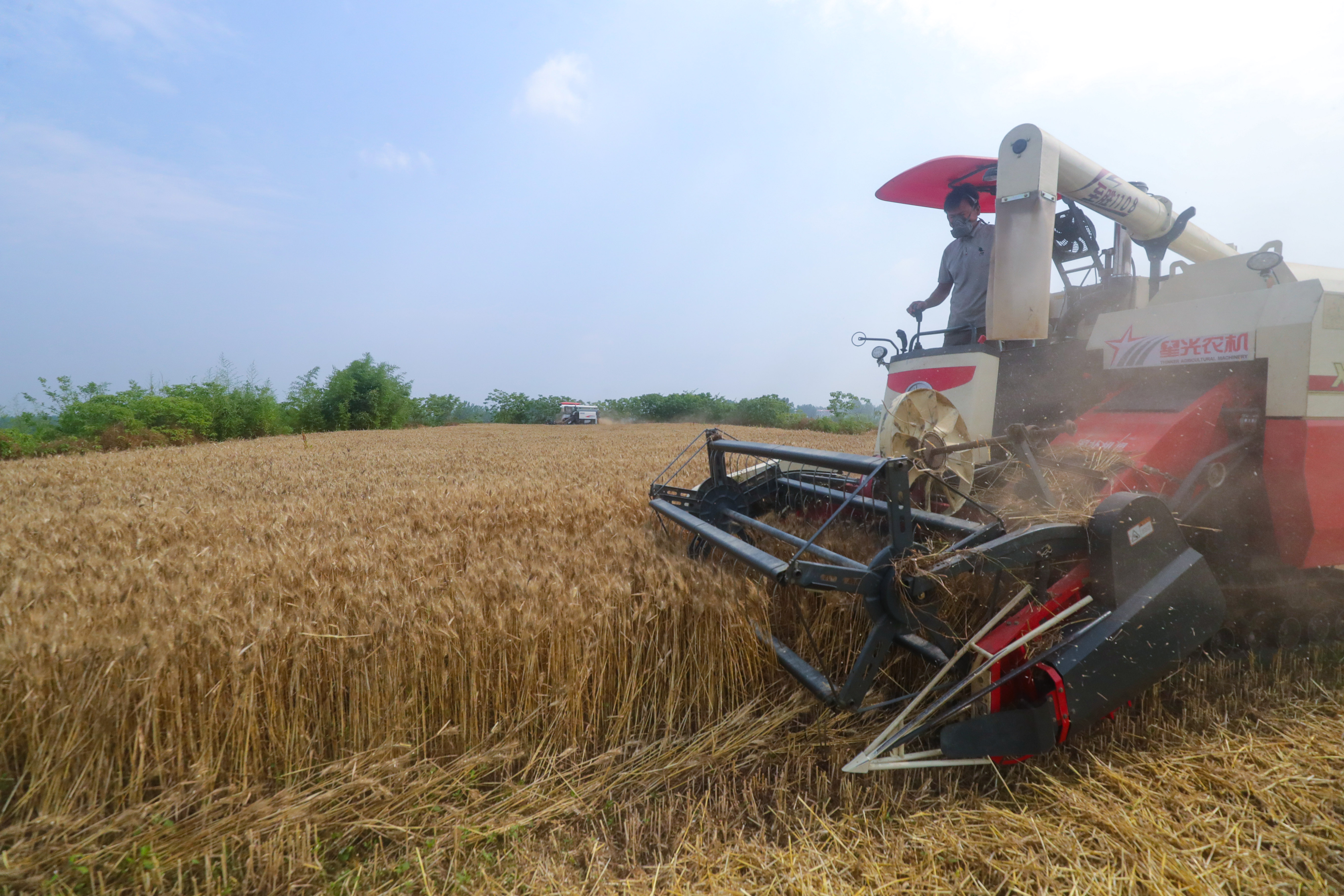 大河网讯 6月1日,信阳市光山县罗陈乡张楼村青龙河合作社社员正在抢收小麦。正值“三夏”时节,该县16万亩小麦陆续成熟,连日来,光山县农业、农机部门正在组织大型机械、人力抢收小麦,确保今夏小麦颗粒归仓。(谢万柏/文图)