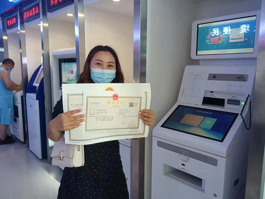 大河网讯 7月14日,在中牟县政务服务大厅,某公司刘女士通过郑州政务服务网“企业开办一件事”平台成功申报企业设立登记,办理中牟县首张智能审批营业执照,切身体会到市场监管审批效率和便利化程度。