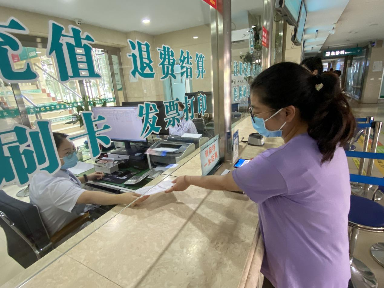 大河网讯 7月14日下午,在襄城县人民医院收费窗口,参保职工龚女士刚刚交完费,她一边仔细地看着这收据,一边说道:“现在政策好呀!我这次拿药花80多还能给我报销20多。”