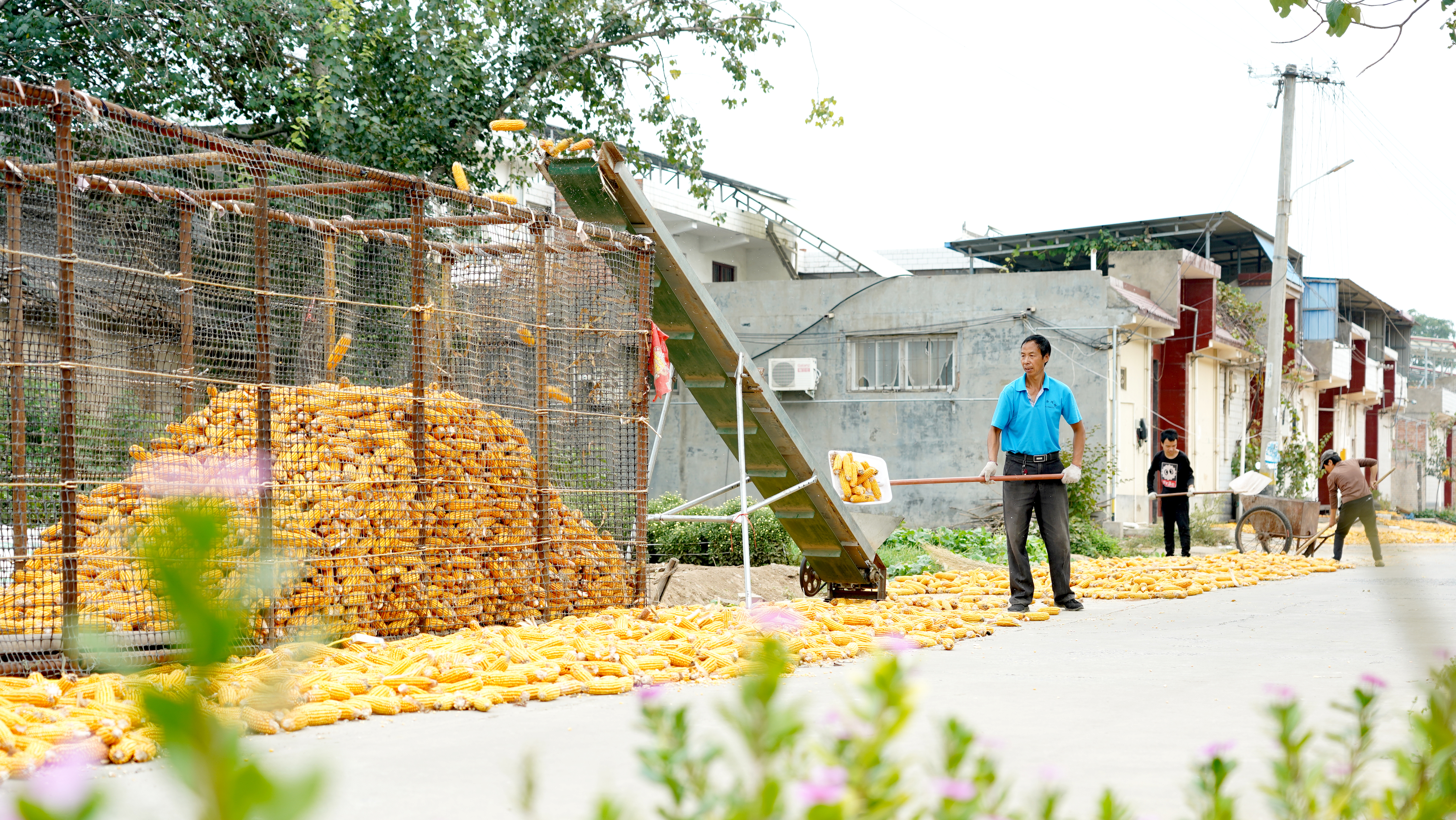 沁阳市柏香镇郜庄村,农户正忙碌着收储自家玉米。