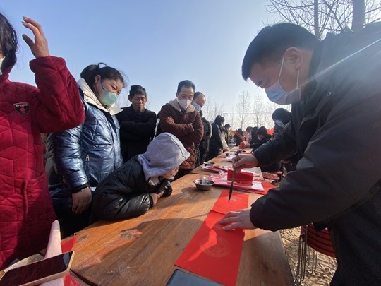 开幕式现场,与会嘉宾为潘店胡村“五位一体”负责人颁发荣誉村民证书,为“五位一体”友好共建单位授牌,为韩寺农业发展写下祝福。科技企业、各村合作社设立展台,亮出“看家本领”,展出“各家特色”,引来附近群众围观询问。中牟县文化广电旅游体育局、县豫剧团以及地方网络红人、邻近村庄农民艺术队带来了文艺演出,表演了秧歌、盘鼓、戏曲、二鬼背跌等精彩演出,演唱了2023年韩寺镇新春镇歌《乡土家园情》,开展了义写春联、金融宣传等一系列公益活动。
