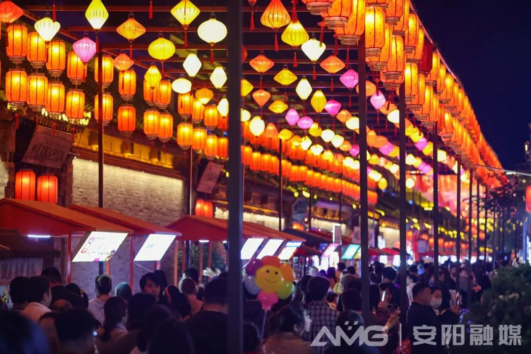 中秋、国庆假期,古城安阳的仓巷街成为游客的热门打卡地。夜晚的仓巷街更是灯光璀璨,流光溢彩,游人如织,令人沉醉。