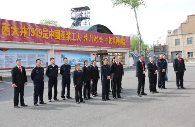 在讲解员的引导下,干警们依次参观了中共焦作矿区委员会旧址、红色家风家训文化馆、焦作煤矿反帝大罢工纪念馆、洞见1969等地。在英雄广场,大家面向党旗,庄严地举起右拳,重温入党誓词,回顾入党初心。参观中,认真聆听历史讲解,仔细观看珍贵史料,全面了解中国煤炭工业发展历程,重温1925年焦作煤矿反帝大罢工的壮阔历史,回顾改革开放以来煤矿企业转型发展的奋进之路,深切感受工人阶级英勇不屈的斗争精神和自强不息的拼搏精神。