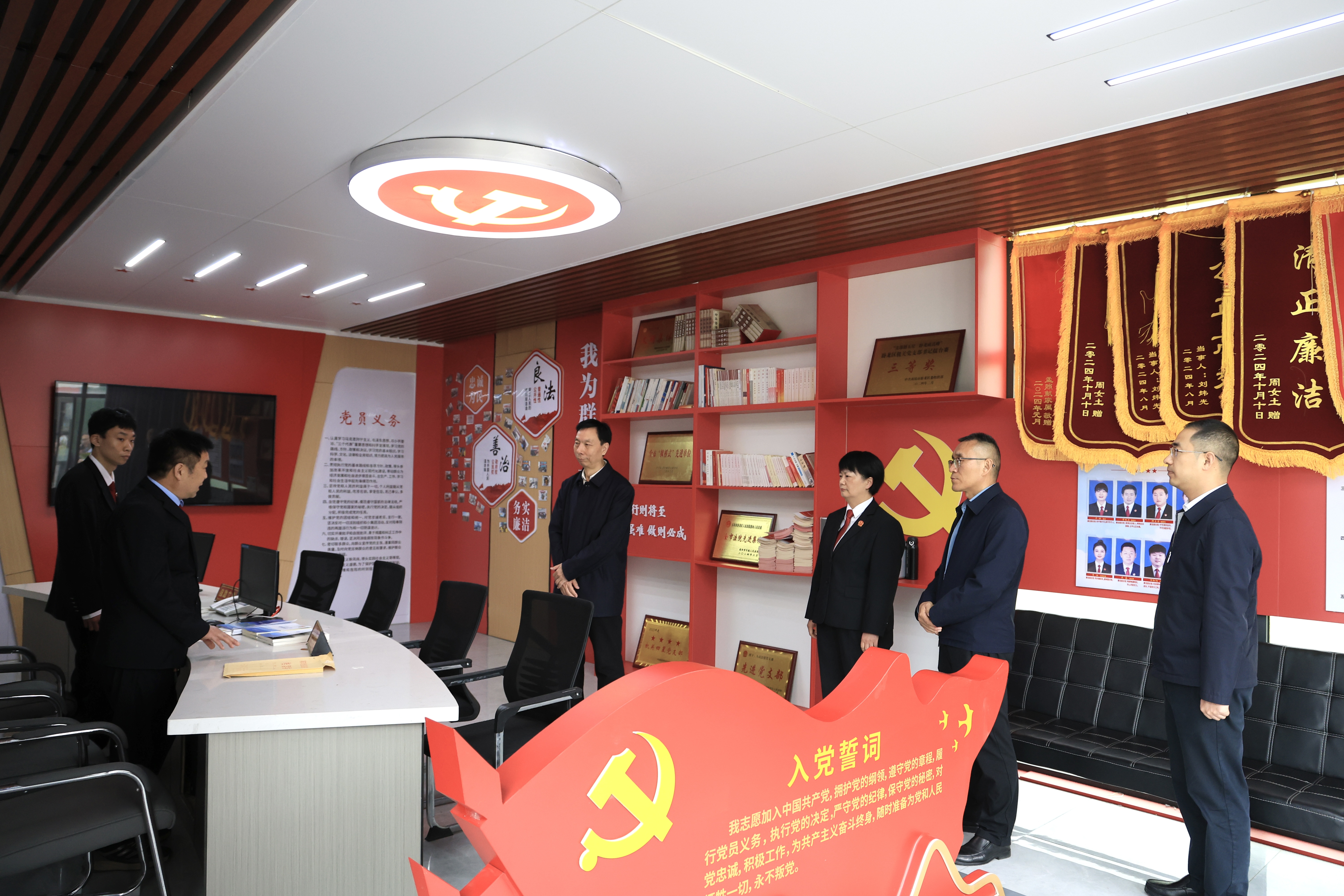 在蒲山法庭,调研组一行实地察看了法庭法治长廊、服务大厅、调解室、审判法庭等办公办案场所,详细询问了辖区经济发展、企业分布及各类纠纷数量等情况,听取了法庭关于基础建设、文化建设、人员配置、审判质效等方面工作的汇报。李志增副院长对法庭工作给予充分肯定,并强调,做好法庭工作是法院工作的基础,要紧紧围绕省法院“夯实基、务实功、出实绩”工作主线,聚焦“一庭一策”差异化发展路径,纵深推进人民法庭标准化、规范化、专业化建设。他指出,法庭不仅要办好案件,更应主动延伸司法职能,通过深入镇村巡回审判、定期与地方党委沟通反馈等方式积极融入基层治理大格局,推动人民法庭建设与基层高效能治理体系有效衔接,切实维护好当事人合法权益。