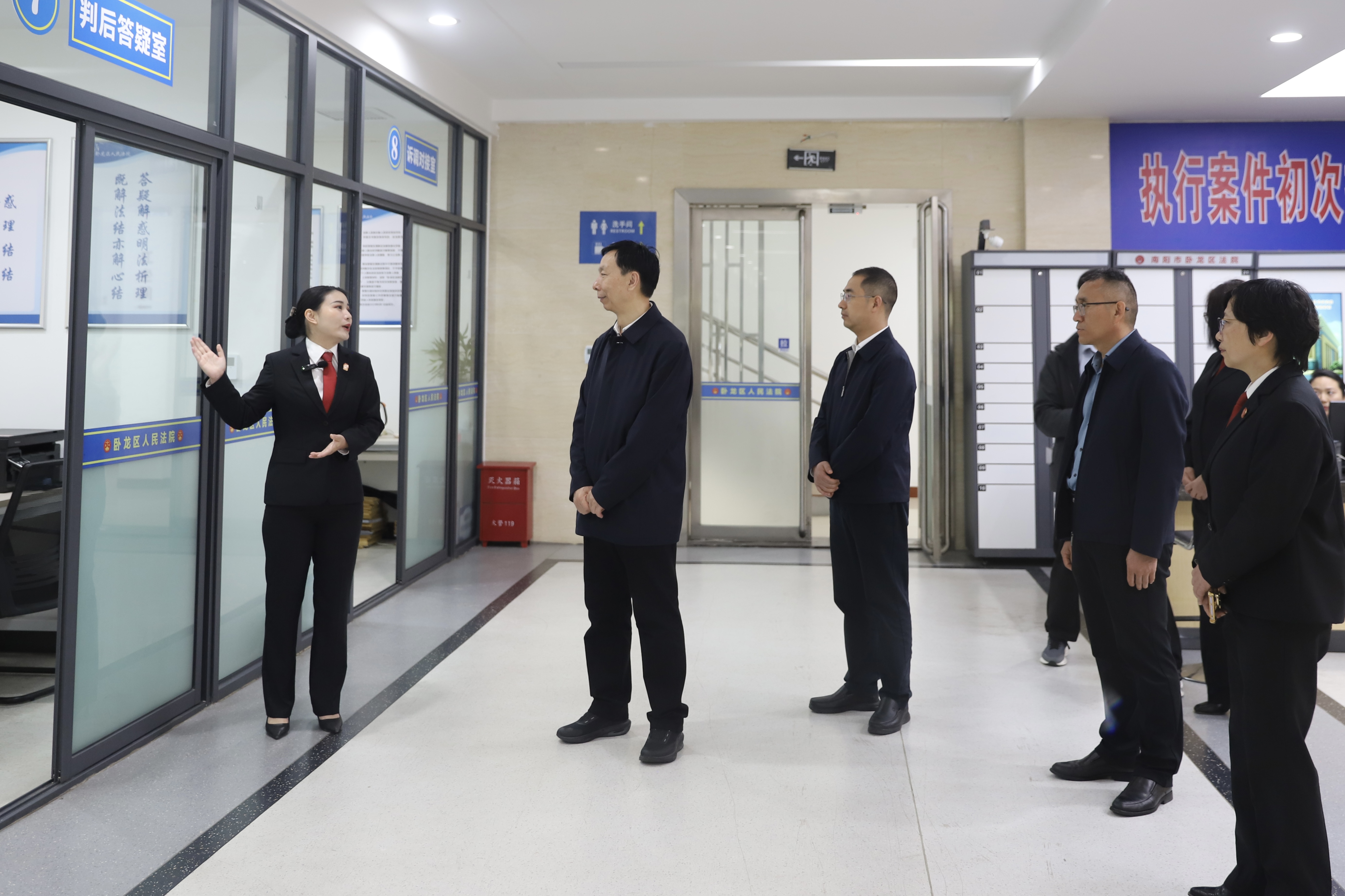 在诉讼服务中心,调研组一行先后察看了立案窗口、执行初次接待窗口、诉调对接室等功能区域,详细了解该院在便民诉讼服务、纠纷多元化解、速裁快审等方面的工作成效。同时,调研组通过现场交流和观摩庭审的方式,全面了解了该院速裁团队建设、速裁案件数量、人员分工、简案办理流程以及小额诉讼案件占比等情况,并提出了指导性的意见和建议。