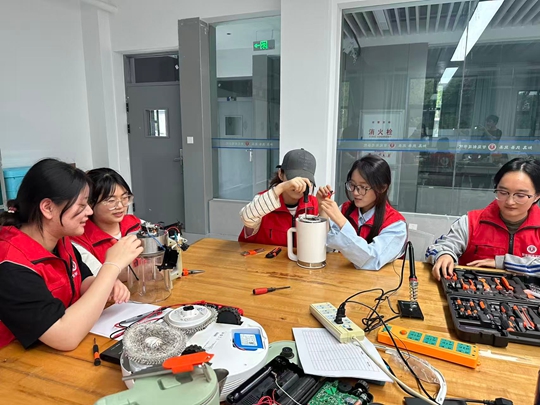志愿者为居民维修小家电