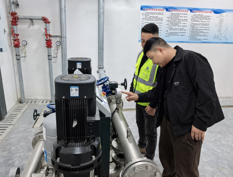 聚焦民生关切、覆盖重点领域,全力守好供水服务“最后一公里”。二次供水设施是城市供水的重要环节,直接关系到高层住户的用水安全。为全面保障供水末端安全稳定,供水公司针对城区44个二次供水小区开展全覆盖、无死角安全排查,重点聚焦设施运行状况、水质保障措施、应急处置能力等关键环节,逐项排查、逐项整改,全面规范二次供水设施管理,补齐供水末端安全短板,切实保障各类用水主体的用水安全,以精细化供水服务提升市场主体和群众的获得感、满意度,为优化营商环境夯实民生基础。